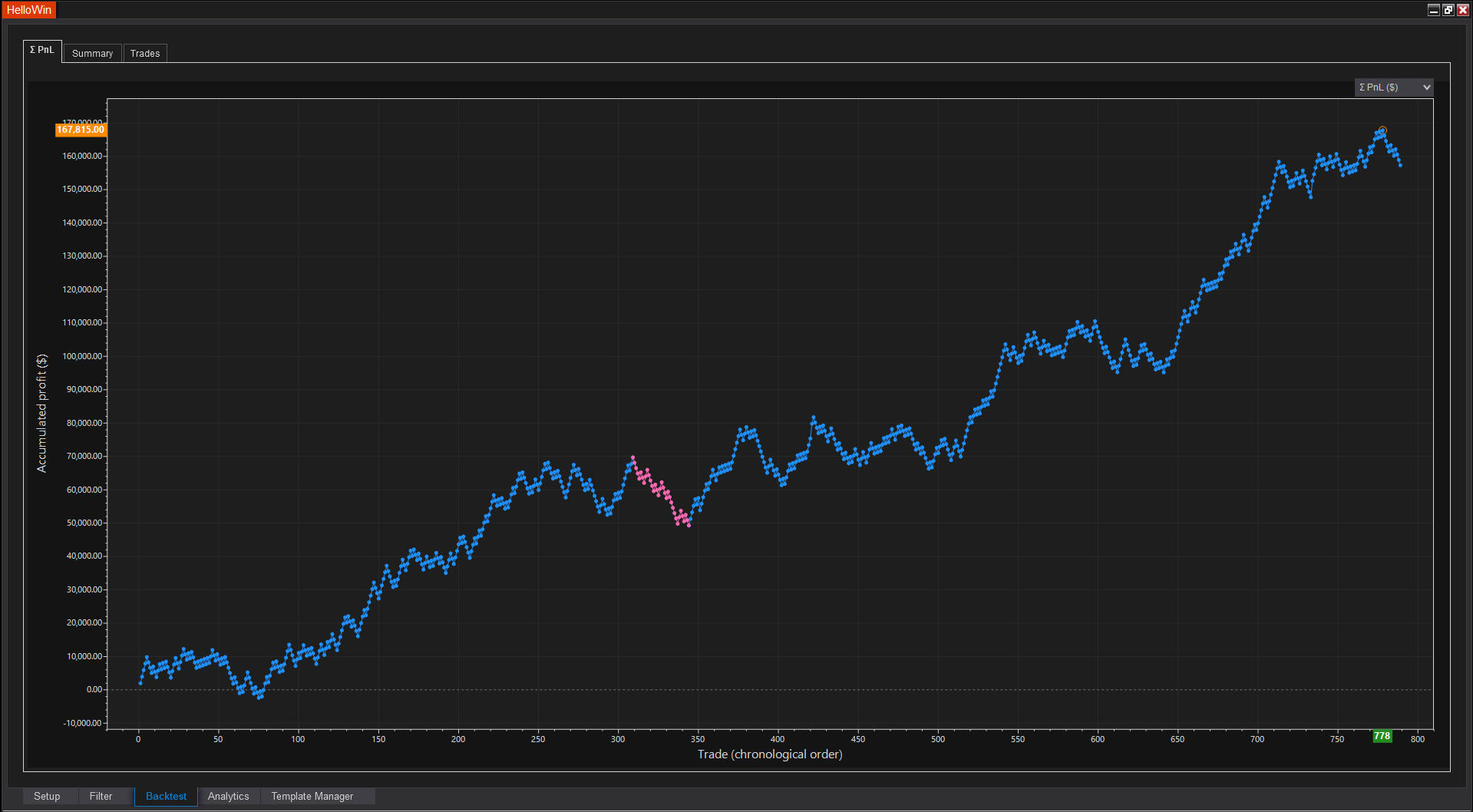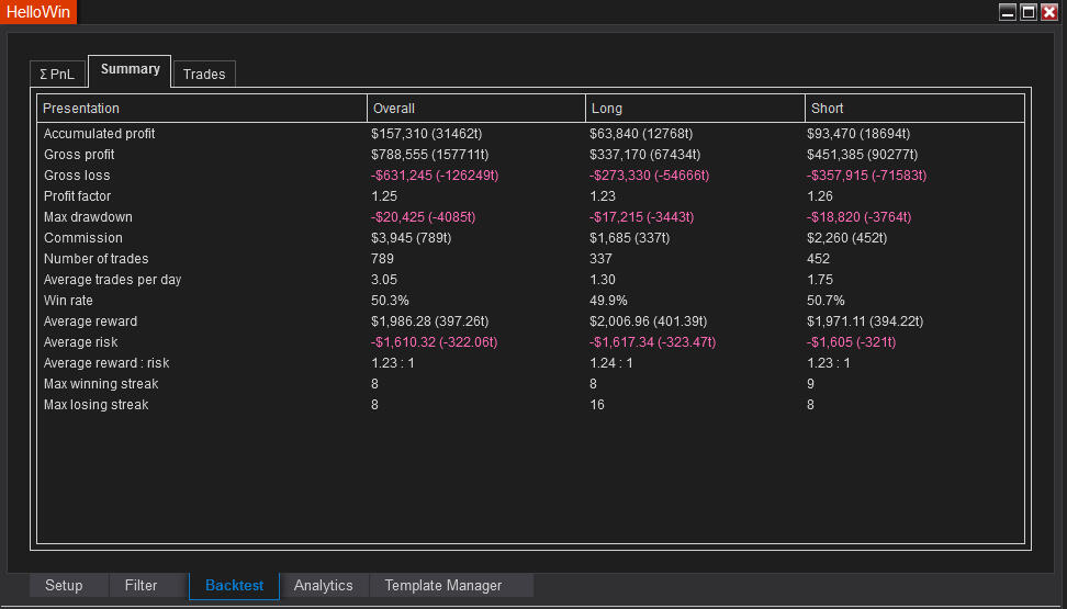 Another impressive 100-day backtest results on NQ, where profit is 6× max drawdown: